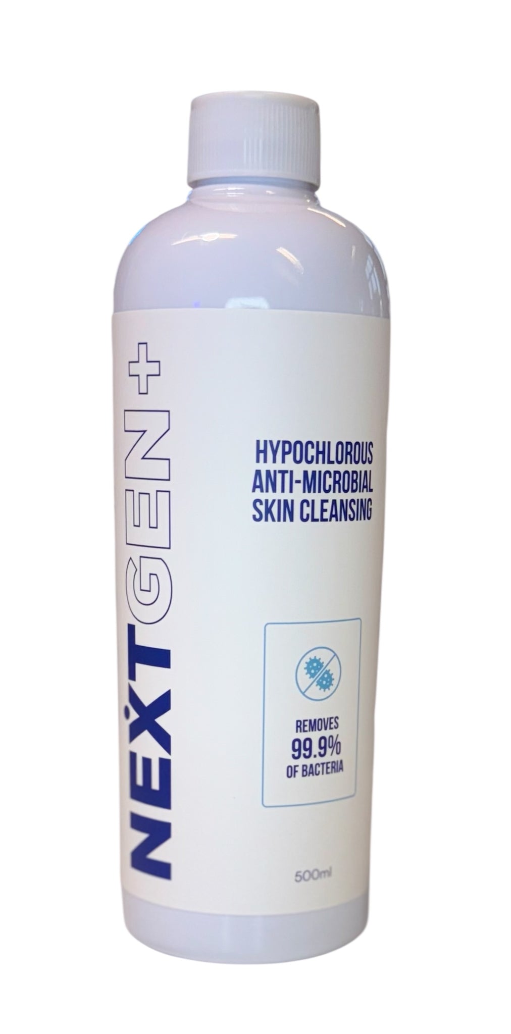 NEXTGEN+ is an anti-microbial hypochlorous solution to effectively remove bacteria of the skin without causing any irritation or stinging and leaving no residue. NEXTGEN+ has been proven to remove 99.9% of Escherichia coli, Staphylococcus aureus and Candida albicans.