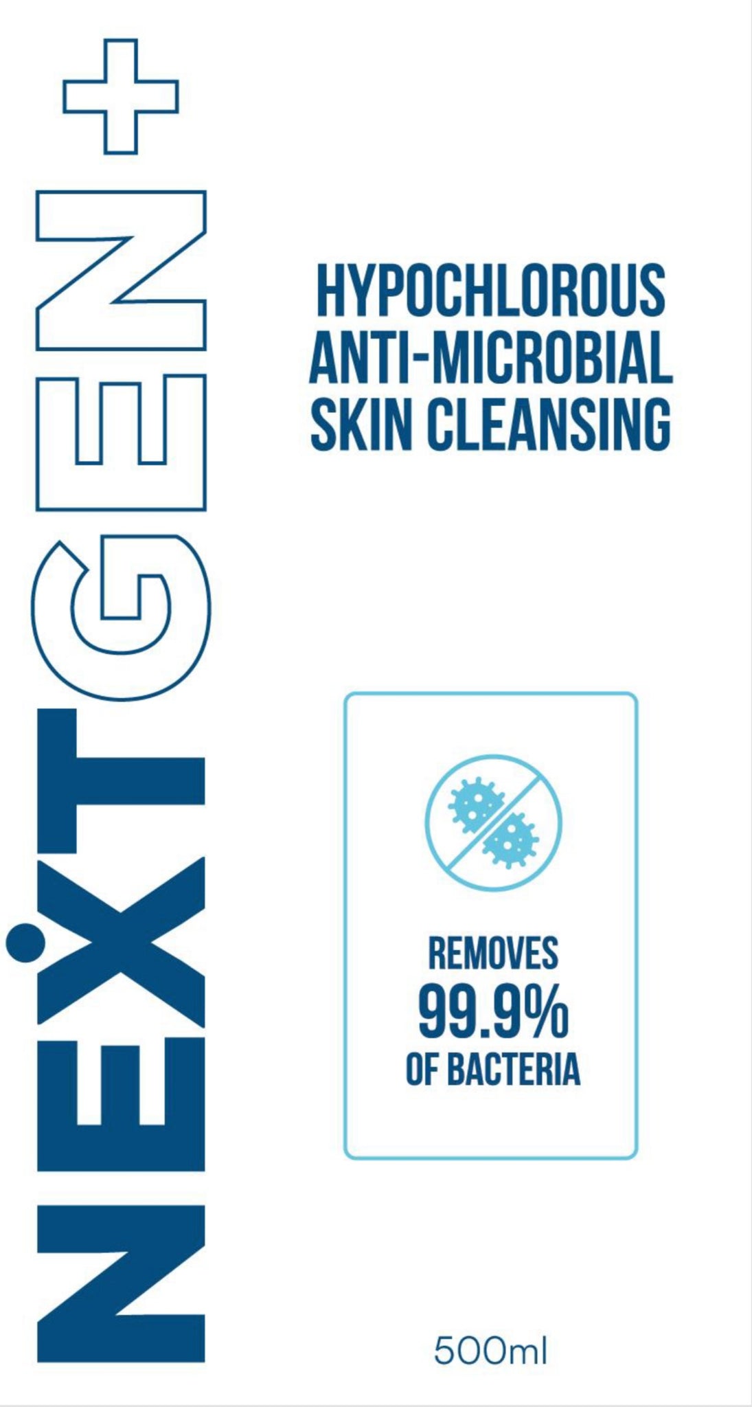 NEXTGEN+ is an anti-microbial hypochlorous solution to effectively remove bacteria of the skin without causing any irritation or stinging and leaving no residue. NEXTGEN+ has been proven to remove 99.9% of Escherichia coli, Staphylococcus aureus and Candida albicans.